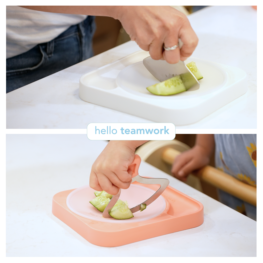 The Totchop Kids Set (finger-safe) is perfect for little hands learning to chop safely and confidently, Montessori-style.