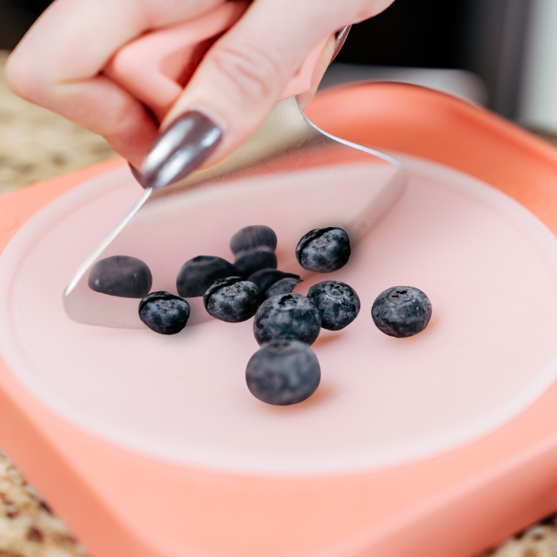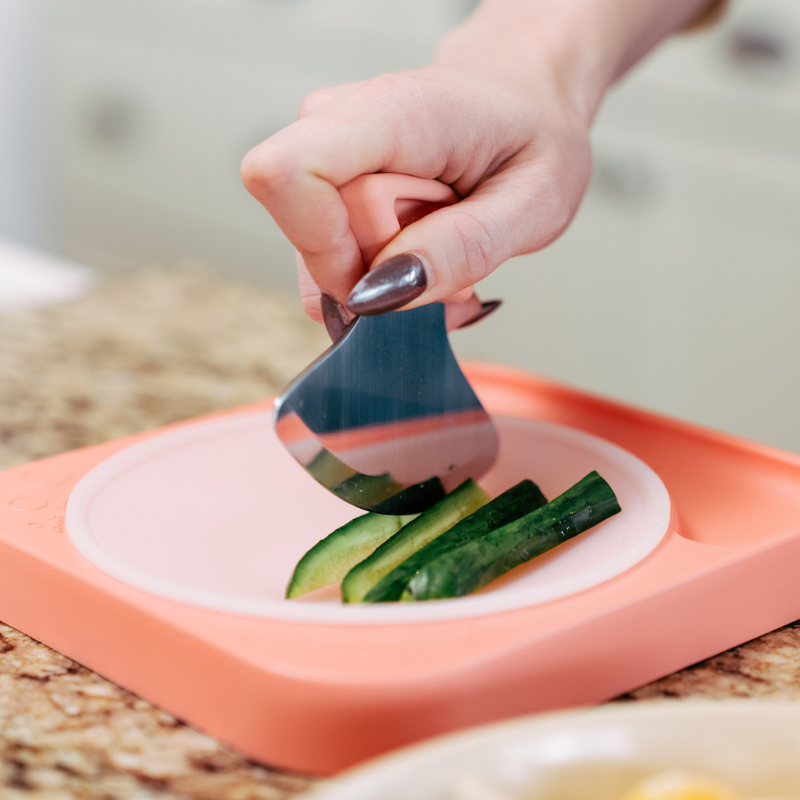 Our Totchop Parent Set (sharp) is the fastest way to prep bites of fruits, veggies, meats, and more! With a therapeutic rocker motion that chops multiple pieces in one smooth stroke, you can confidently prep snacks with just one hand.